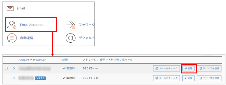 ※お使いの環境によって「メールアカウント」という表記になっている場合がございます。